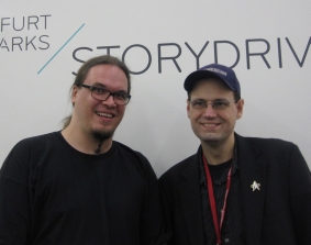 Werbeleiter Jörg Schindler (auf dem Foto rechts) ermöglichte mir eine Probepartie mit der kommenden Erweiterung Pirates of the Flying Fortress. „Es verschlägt den Spieler diesmal auf vier Hauptinseln nordwestlich der alten Welt“, so Schindler. Einigen Stunden und diverse Kämpfen mit Skeletten und Monstern später befinde ich mich wieder auf der Autobahn. Mit solchen Spielen bleibt Zuxxez vermutlich auch weitere 25 Jahre im Geschäft.